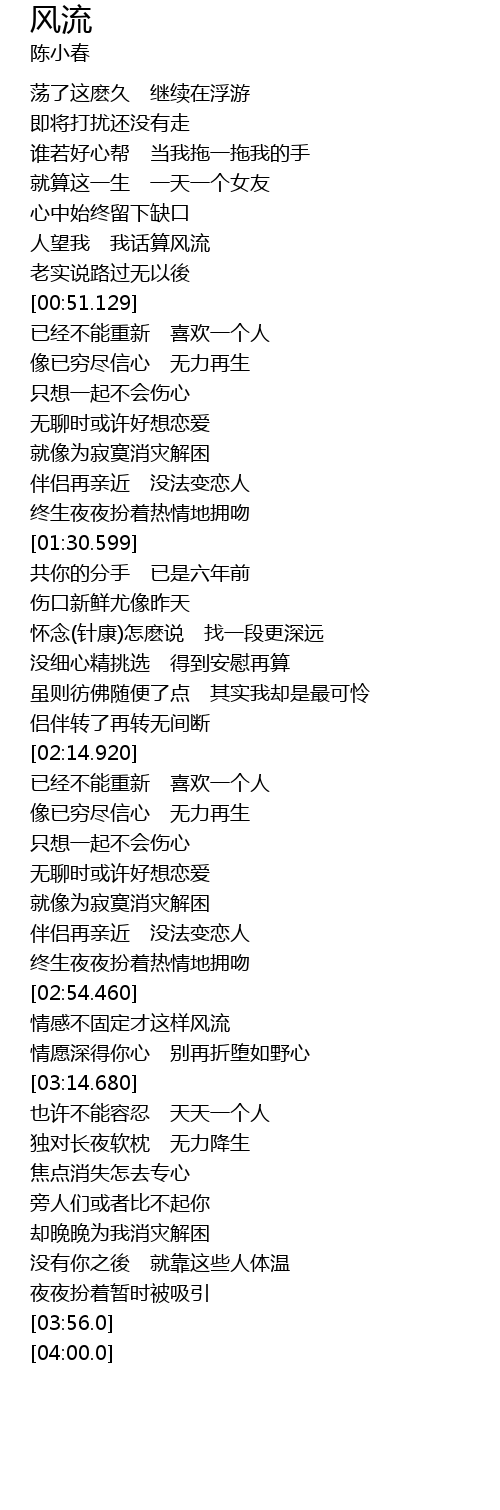 | [00:42.799] | 人望我 我话算风流 |