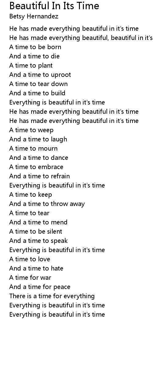 He has made everything beautiful, beautiful in it's time |