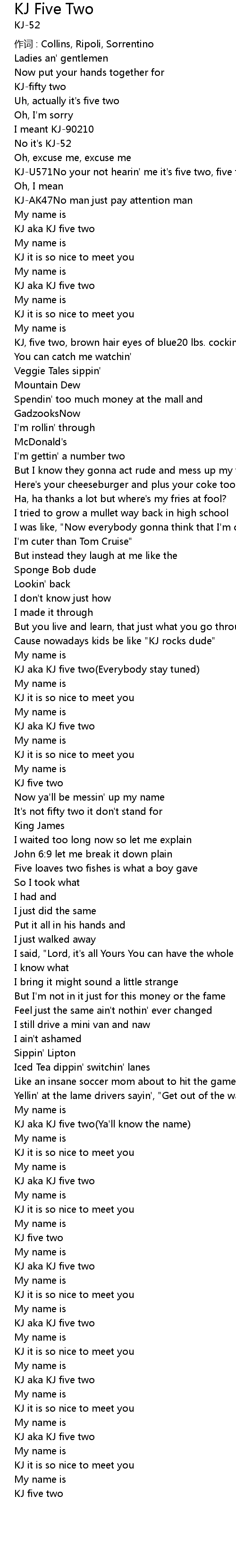 | KJ aka KJ five two Ya' ll know the name | |