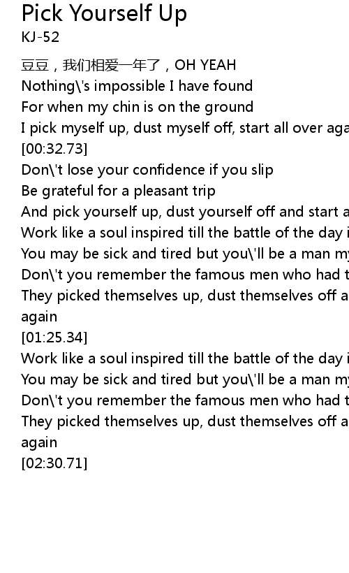 | [00:25.61] | I pick myself up, dust myself off, start all over again |