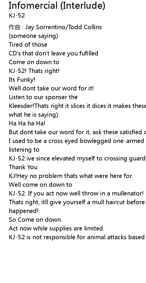 | Song | Infomercial (Interlude) |