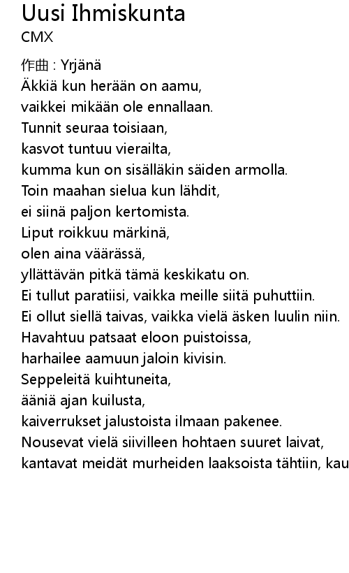 | Ei ollut siell taivas, vaikka viel sken luulin niin. | |