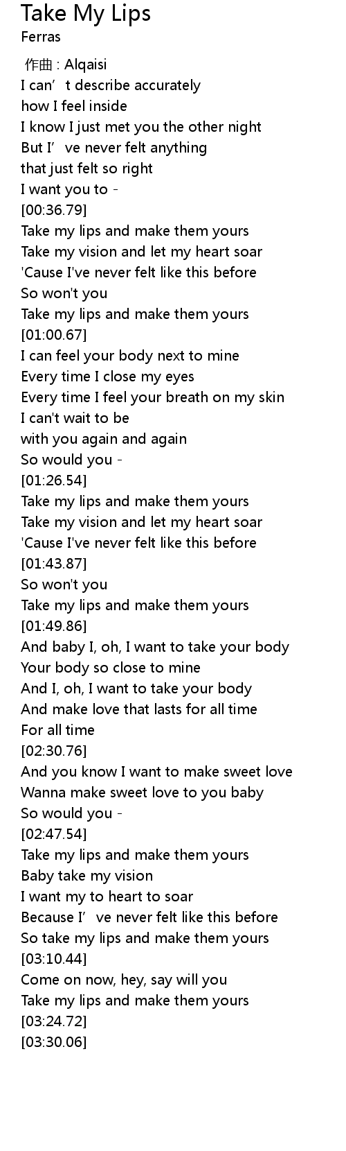 | [03:19.36] | Take my lips and make them yours |