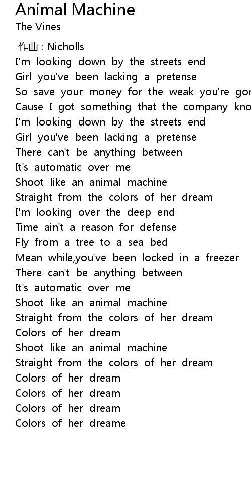 | [01:08.37] | Shoot like an animal machine |