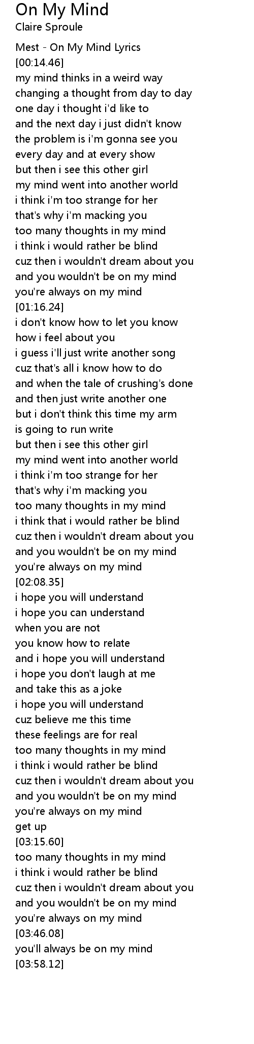 Mest - On My Mind Lyrics |