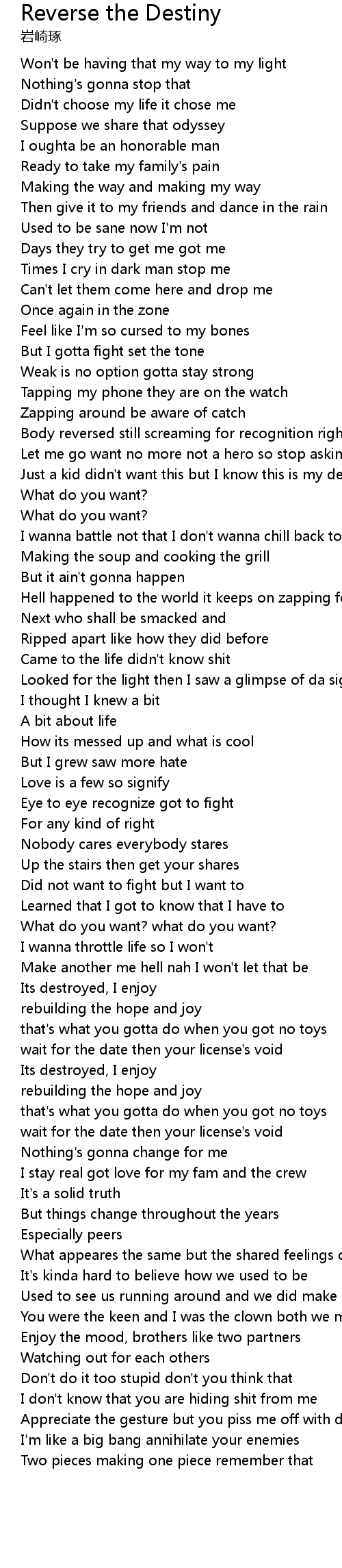 Just a kid didn't want this but I know this is my destiny |