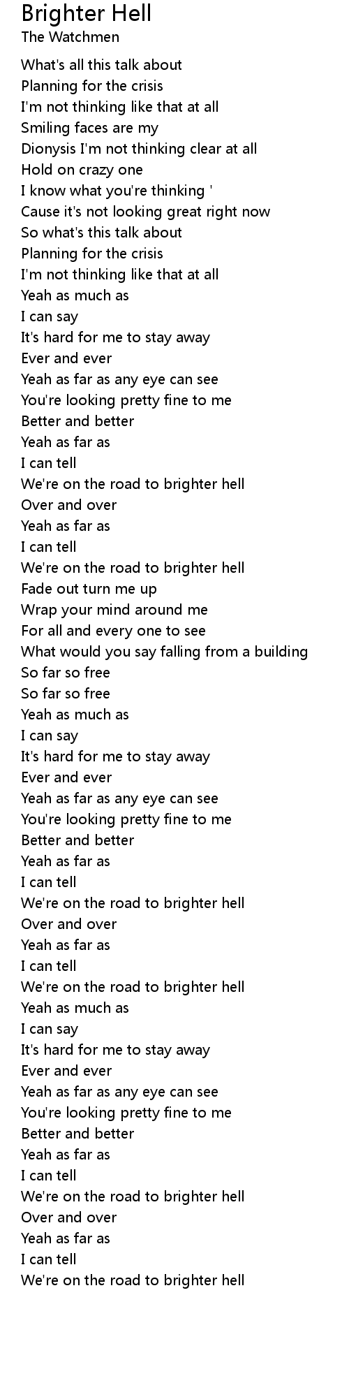 We're on the road to brighter hell |