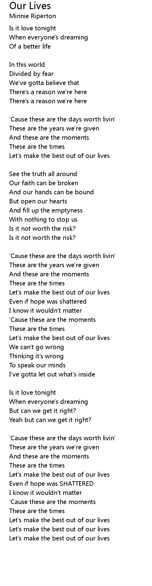 Let's make the best out of our lives |