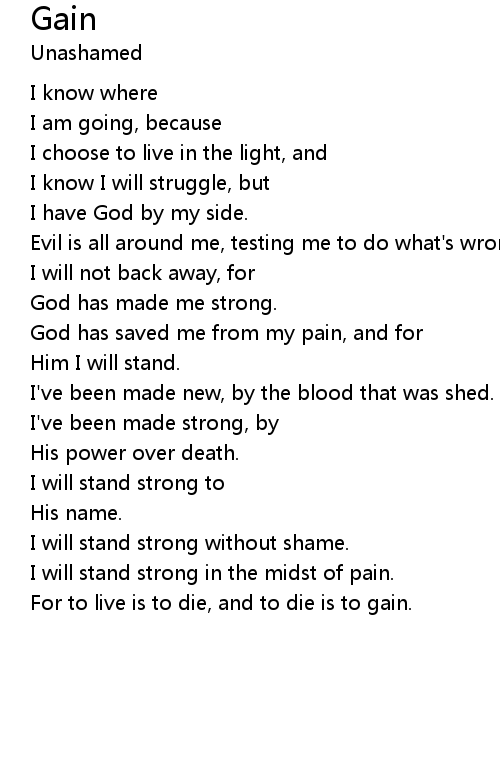 | I will stand strong without shame. | |