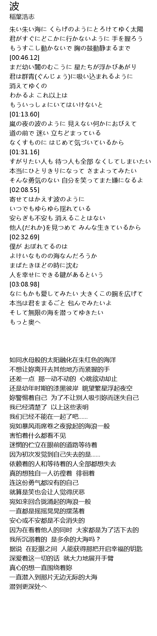 | [02:19.55] | 安らぎも不安も 消えることはない |