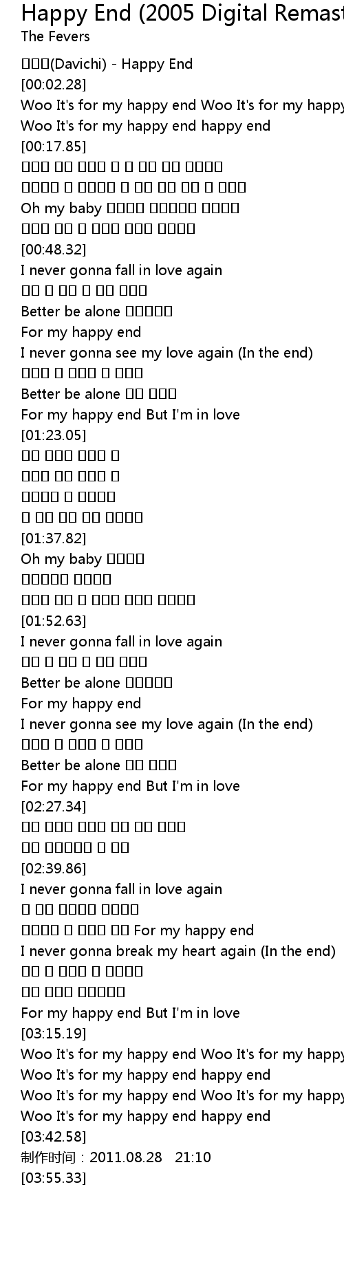 | [00:10.54] | Woo It's for my happy end happy end |