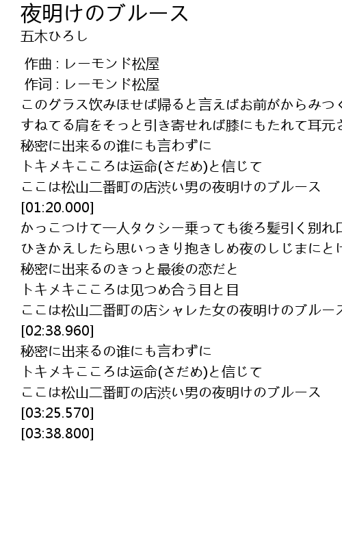 | [01:05.050] | ここは松山二番町の店渋い男の夜明けのブルース |
