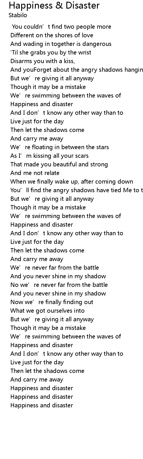 | Song | Happiness & Disaster |