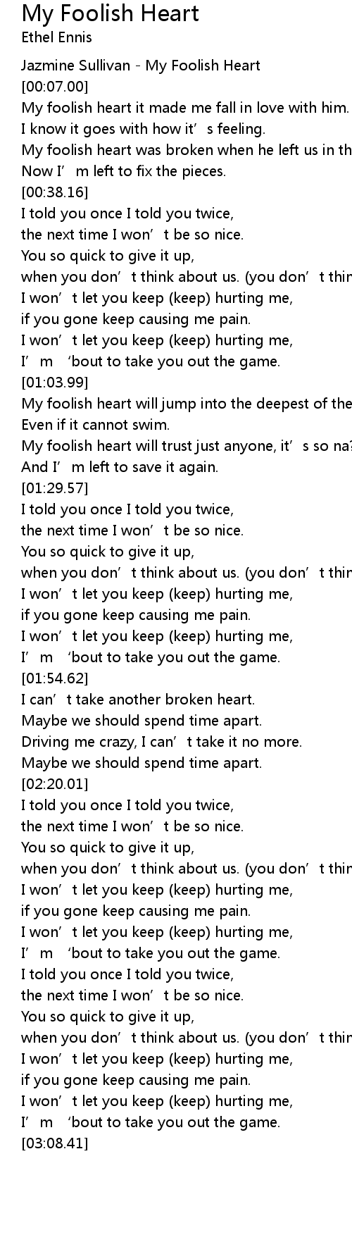 | [00:02.00] | Jazmine Sullivan My Foolish Heart |