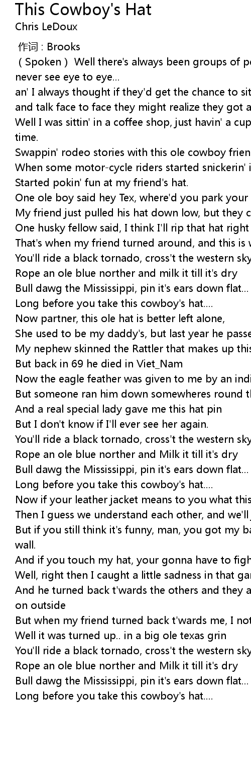 | Song | This Cowboy's Hat |