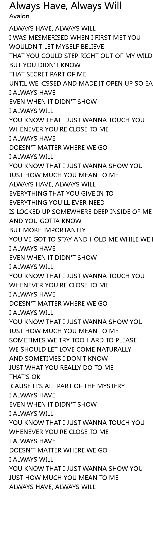 ALWAYS HAVE, ALWAYS WILL |