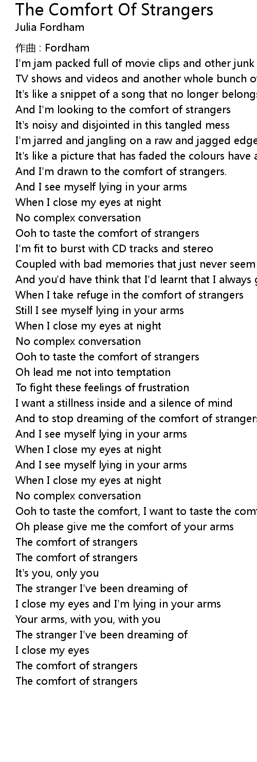 | And I'm looking to the comfort of strangers | |