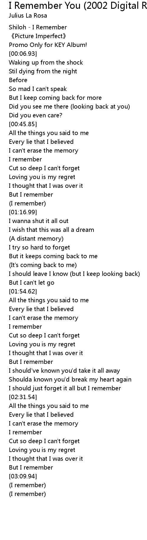 | [02:22.52] | Shoulda known you' d break my heart again |