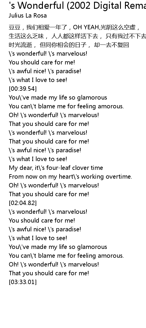 | [00:11.86] | ' s wonderful! ' s marvelous! |