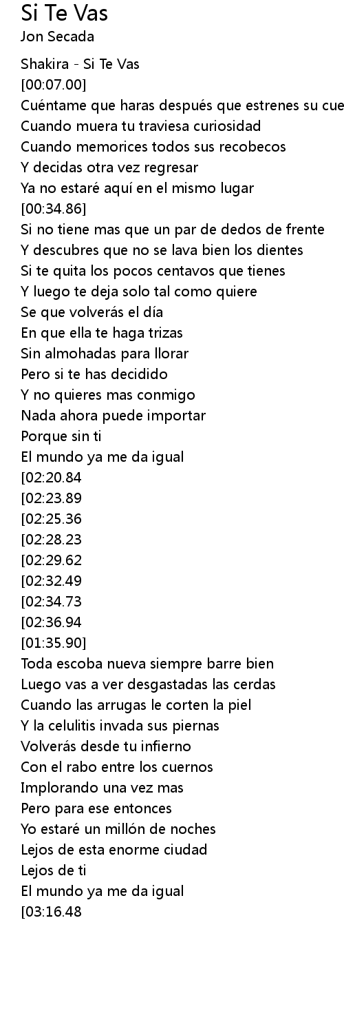 | [02:59.92][02:25.36][01:20.49] | Si te vas, si te vas, ya no tienes |