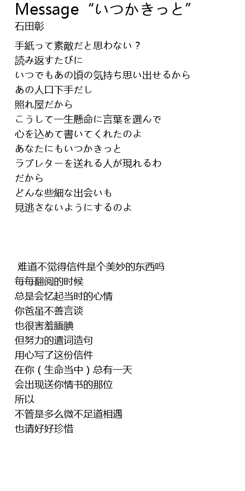 | [00:15.76] | 心を込めて書いてくれたのよ |