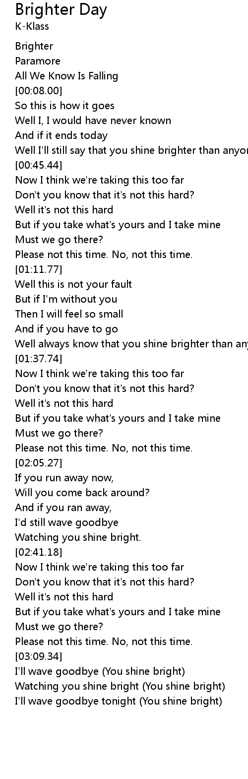| [00:37.64] | Well I'll still say that you shine brighter than anyone |