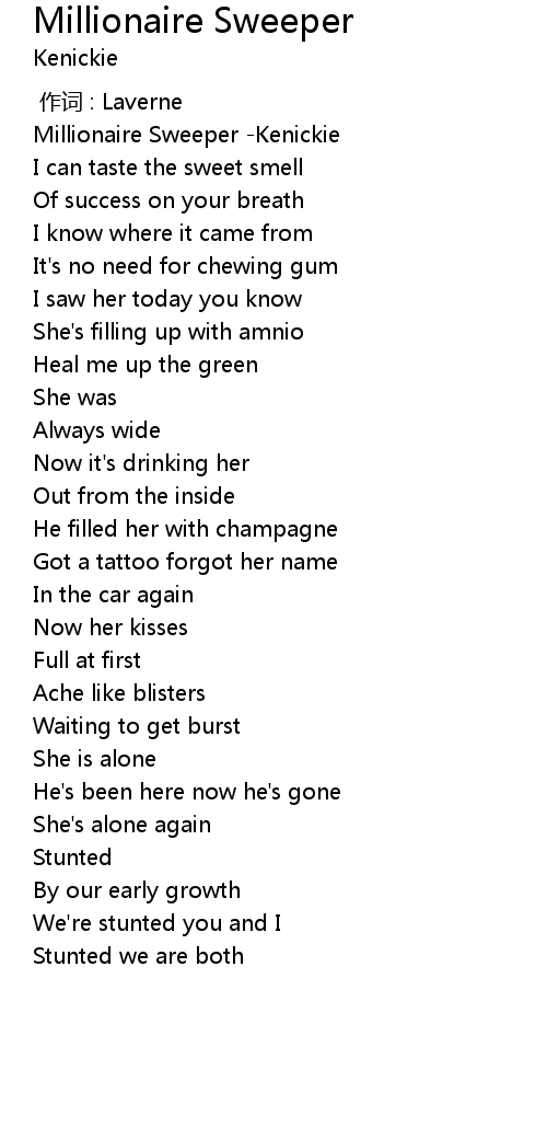 | [00:00.441] | Millionaire Sweeper Kenickie |