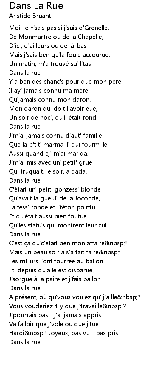 | A présent, où qu'vous voulez qu' j'aille ? | |