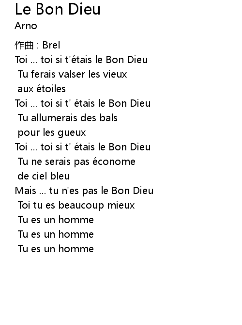 | Toi ... toi si t' e tais le Bon Dieu | |
