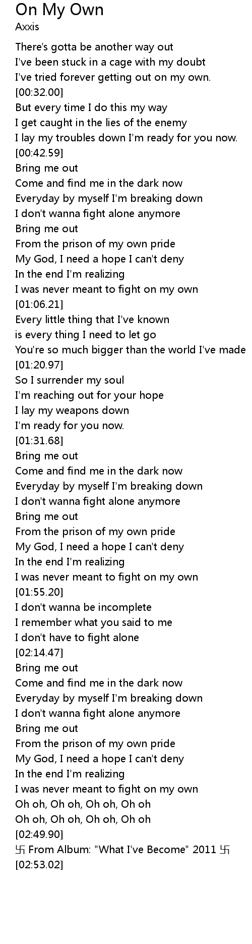 | [00:27.73] | I've tried forever getting out on my own. |
