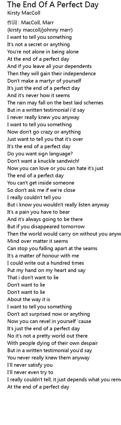 | It' s the end of a perfect day | |