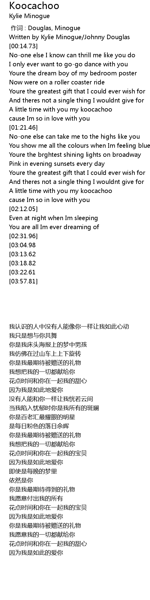 | [00:00.00] | 作词 : Douglas, Minogue |