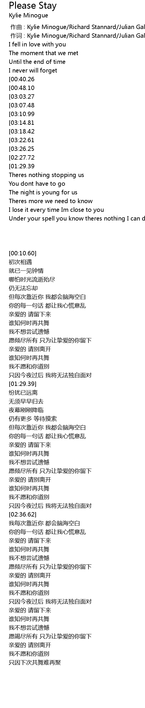 | [03:33.96][03:03.27][02:01.52][00:54.27] | Please stay my Babe |