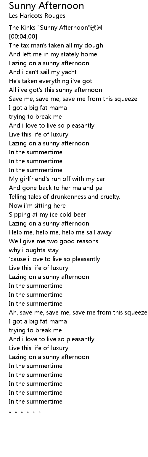 | [00:01.48] | The Kinks "Sunny Afternoon"歌词 |
