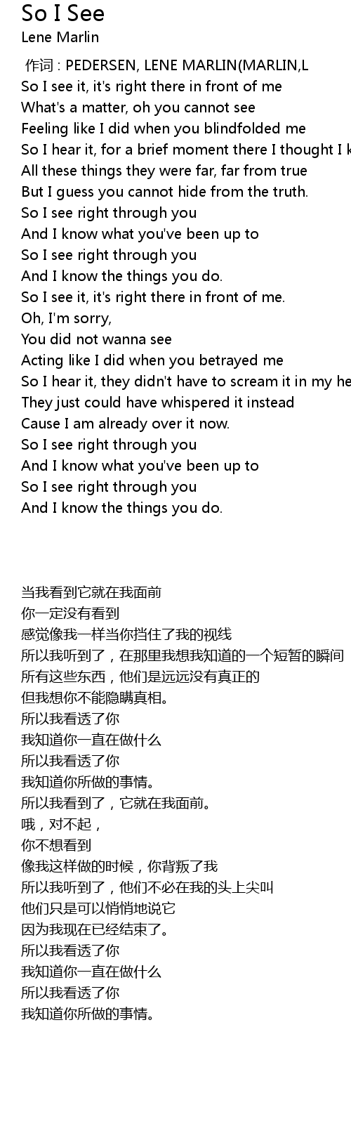 | [00:28.45] | So I see it, it' s right there in front of me |