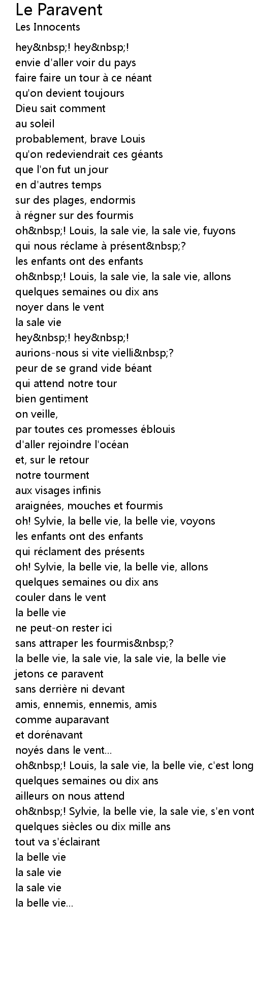 | Song | Le Paravent |