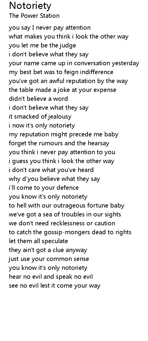 you know it's only notoriety |