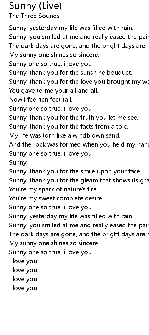 Sunny, yesterday my life was filled with rain. |