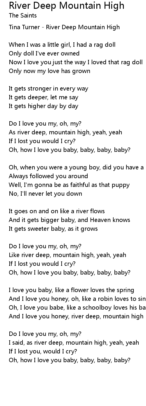 And I love you honey, river deep, mountain high |