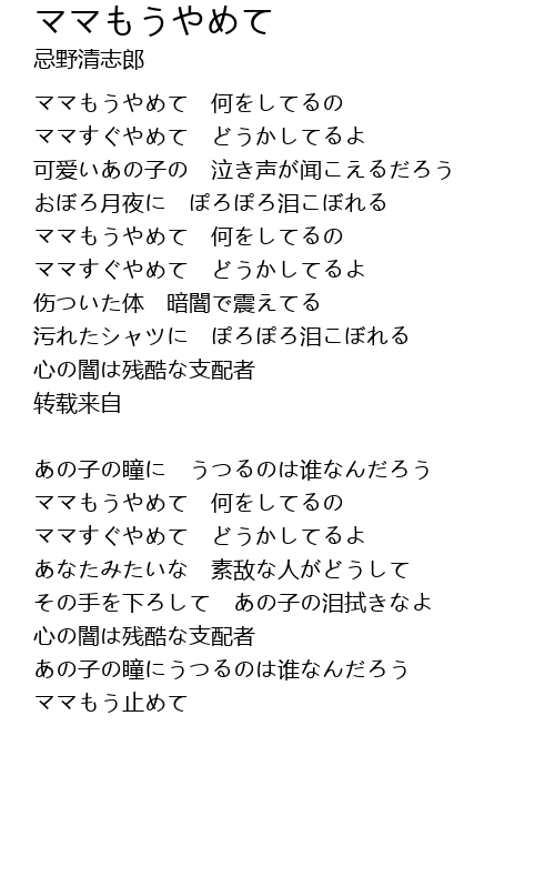 | 污れたシャツに ぽろぽろ泪こぼれる | |