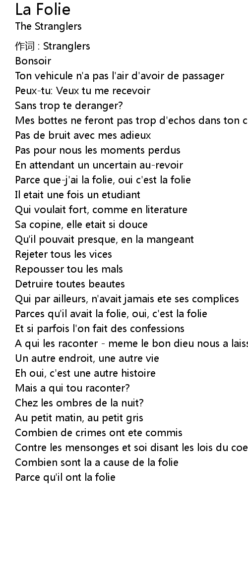 | Parce que-j'ai la folie, oui c'est la folie | |