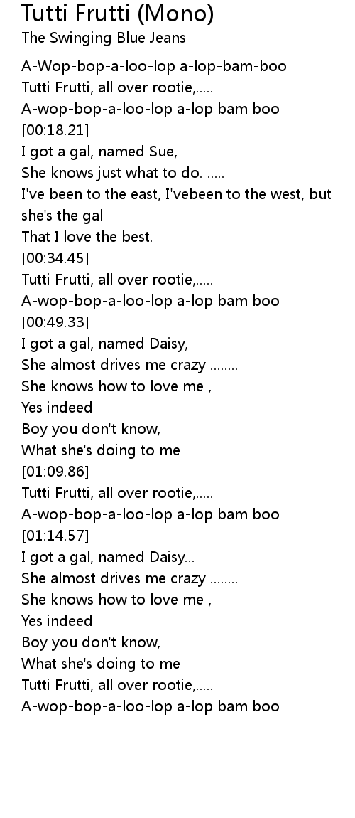 [00:03.21] Tutti Frutti, all over rootie,.....
