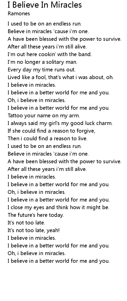 I Believe In Miracles Lyrics