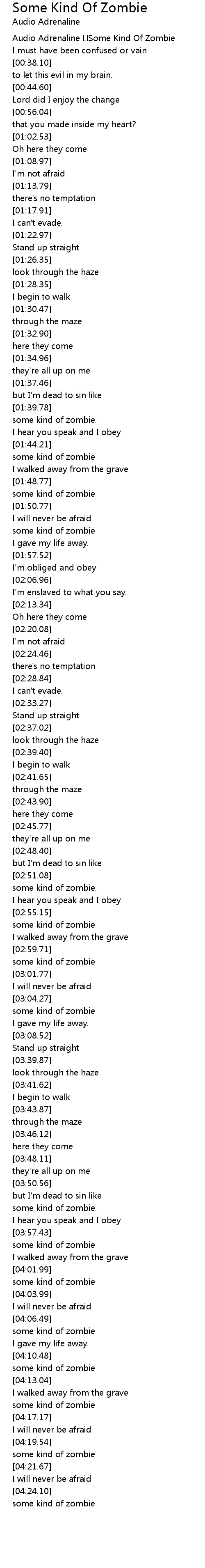 | [00:02.41] | Audio Adrenaline Some Kind Of Zombie |