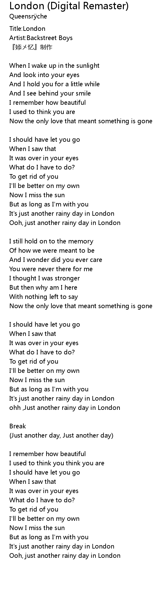 | Song | London (Digital Remaster) |