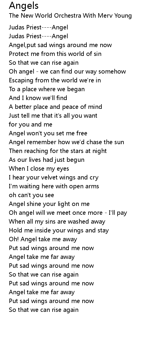 Angel,put sad wings around me now |
