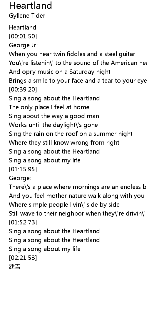 | [00:39.47] | Sing a song about the Heartland |