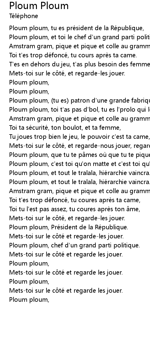 | Ploum ploum, tu es pré sident de la Ré publique, | |