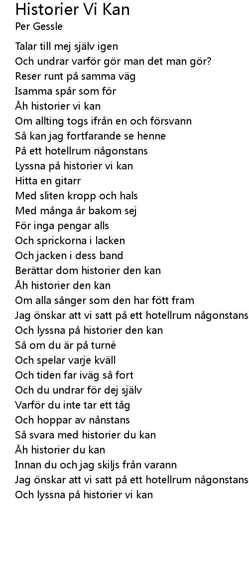 | Song | Historier Vi Kan |