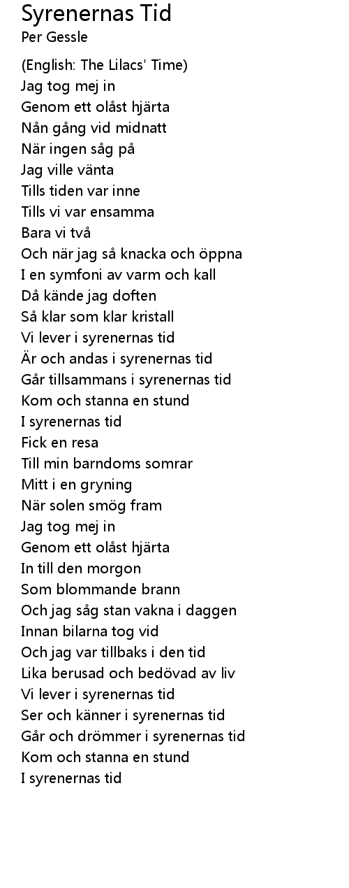 | Är och andas i syrenernas tid | |